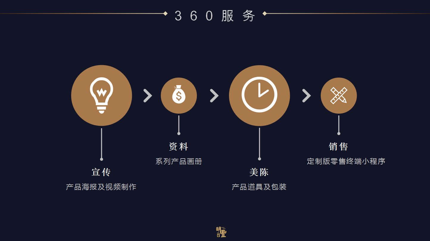 為客戶提供產(chǎn)品配套的道具、包裝、微信推廣、燈片、H5等一系列的增值服務(wù)。